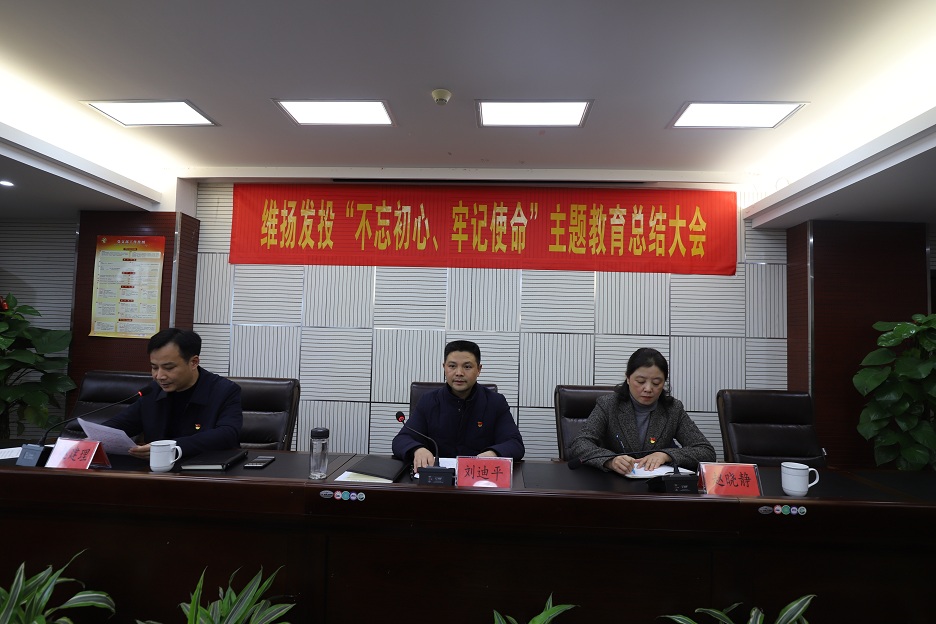 1月17日下午,維揚(yáng)發(fā)投召開“不忘初心、牢記使命”主題教育總結(jié)大會(huì),區(qū)委第八巡回指導(dǎo)組組長(zhǎng)趙曉靜同志、副董事長(zhǎng)(主持工作)劉迪平、總經(jīng)理趙建理出席會(huì)議,副總經(jīng)理姜晉堯、全體干部職工參加會(huì)議。 本次會(huì)議深入學(xué)習(xí)貫徹中央和省、市、區(qū)“不忘初心、牢記使命”主題教育總結(jié)大會(huì)精神,認(rèn)真回顧總結(jié)公司主題教育工作,鞏固深化主題教育成果,激勵(lì)公司全體黨員干部職工,自覺踐行初心和使命。 會(huì)議指出,主題教育開展以來,公司上下認(rèn)真落實(shí)中央和省市區(qū)部署要求,在區(qū)委主題辦、區(qū)委第八巡回指導(dǎo)組的精心指導(dǎo)和嚴(yán)格督導(dǎo)下,按照區(qū)委的部署安排,深入貫徹“守初心、擔(dān)使命,找差距、抓落實(shí)”總要求,聚焦“理論學(xué)習(xí)有收獲、思想政治受洗禮、干事創(chuàng)業(yè)敢擔(dān)當(dāng)、為民服務(wù)解難題、清正廉潔作表率”具體目標(biāo),推動(dòng)主題教育達(dá)到了預(yù)期目的,取得了顯著成效。 公司黨支部書記、副董事長(zhǎng)(主持工作)劉迪平在會(huì)上強(qiáng)調(diào),主題教育雖然暫告一段落,但守初心、擔(dān)使命永遠(yuǎn)在路上。公司上下要以這次主題教育為新的起點(diǎn),不斷深化自我革命,持續(xù)推動(dòng)維揚(yáng)發(fā)投不忘初心、牢記使命。一是提高政治站位,確保思想認(rèn)識(shí)到位。從樹牢“四個(gè)意識(shí)”、堅(jiān)定“四個(gè)自信”、堅(jiān)決做到“兩個(gè)維護(hù)”的高度,切實(shí)把學(xué)習(xí)成效體現(xiàn)到增強(qiáng)黨性、提高能力、改進(jìn)作風(fēng)、推動(dòng)工作上來。二是堅(jiān)持問題導(dǎo)向,確保整改落實(shí)到位。堅(jiān)持以正視問題的自覺和刀刃向內(nèi)的勇氣,抓好突出問題的專項(xiàng)整治。三是完善相關(guān)制度,形成長(zhǎng)效機(jī)制。結(jié)合公司實(shí)際,制定黨員干部“不忘初心、牢記使命”制度,形成長(zhǎng)效機(jī)制并長(zhǎng)期堅(jiān)持下去,切實(shí)鞏固拓展主題教育成果。 最后,會(huì)議號(hào)召公司全體干部職工不忘初心、牢記使命,為全面貫徹落實(shí)區(qū)委、區(qū)政府決策部署,推進(jìn)邗江城市建設(shè)高質(zhì)量發(fā)展貢獻(xiàn)力量。